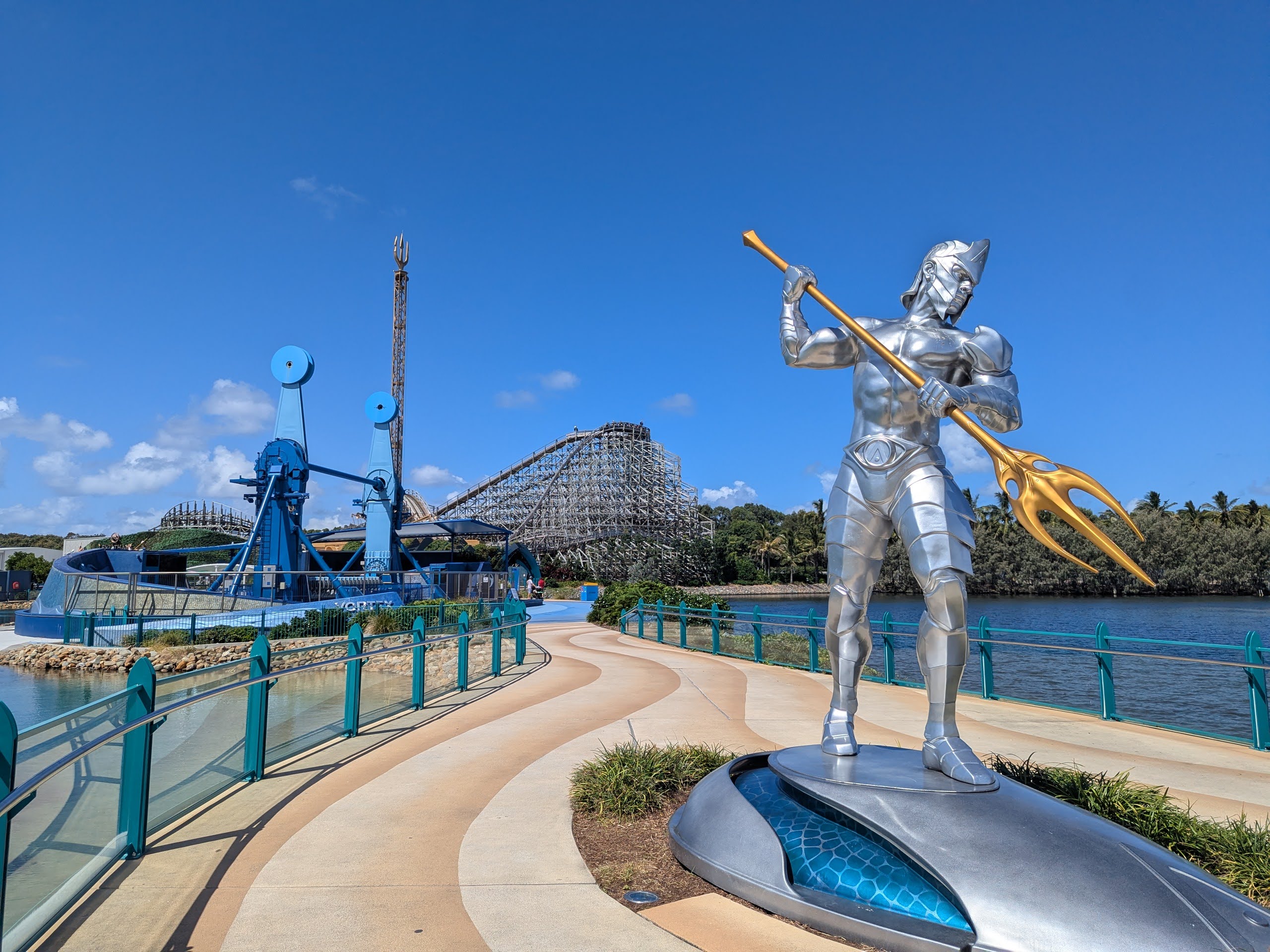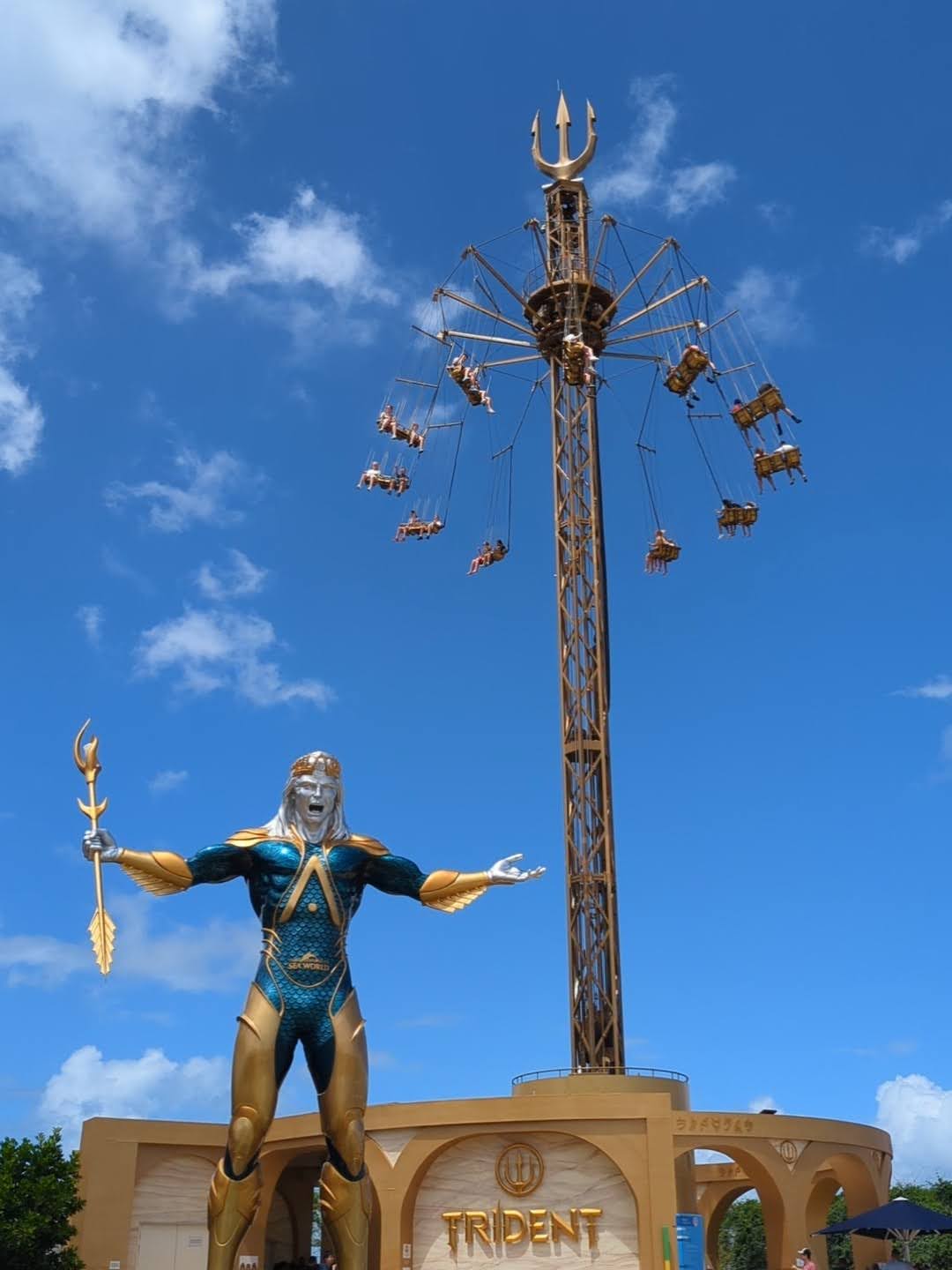- Trident lifts you 52 metres into the air, offering stunning views of the park from above before spinning through the sky.