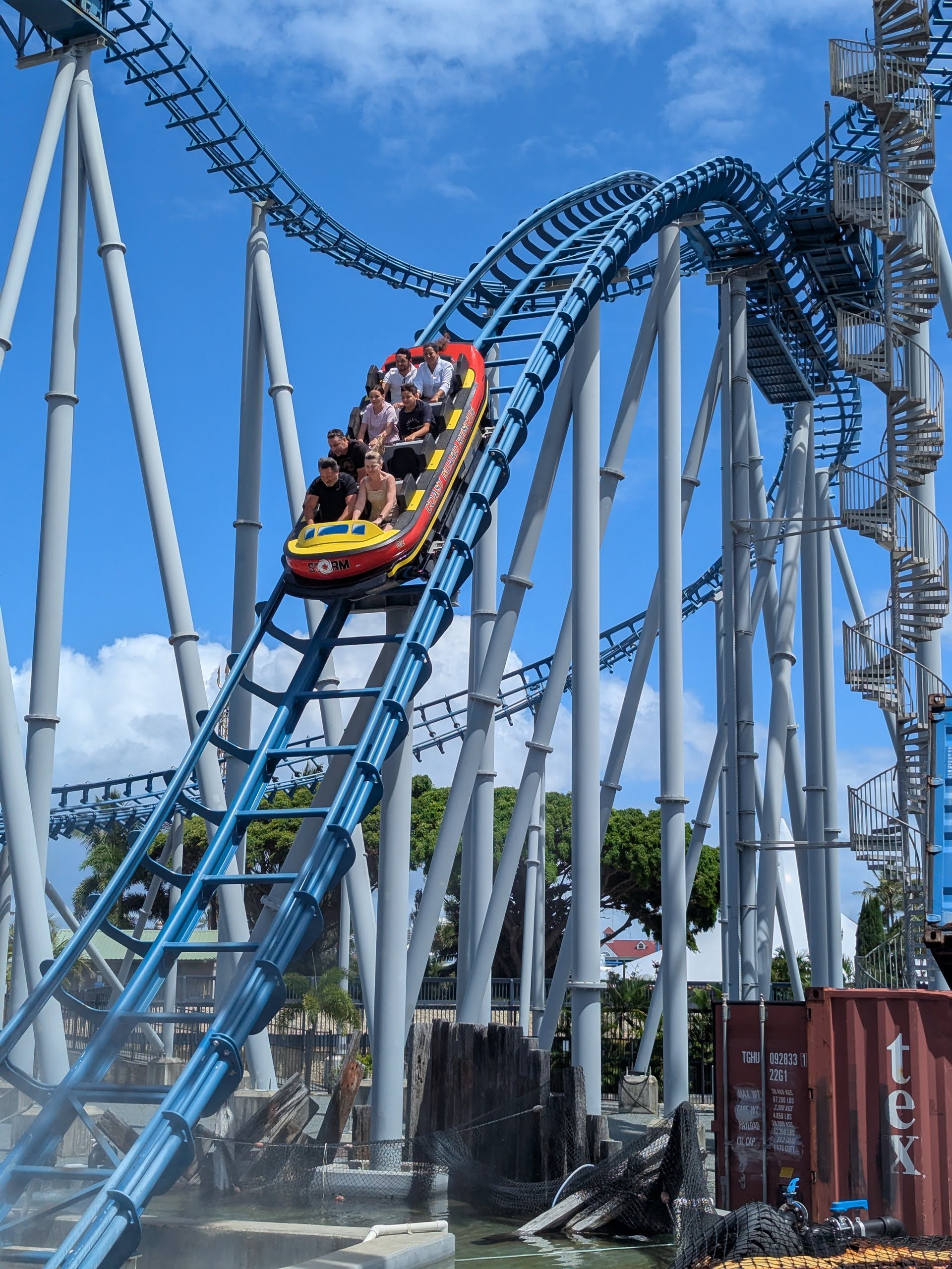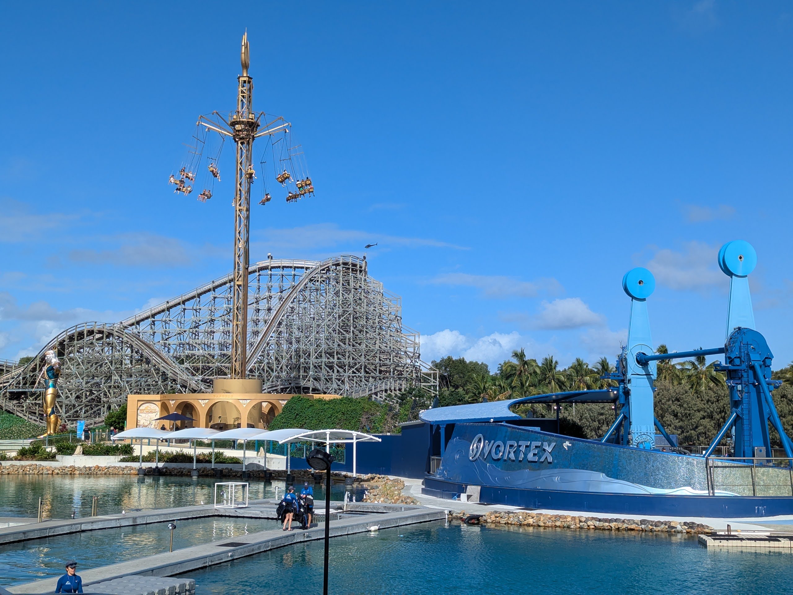 - Vortex spins riders through forces of up to 5g in a swirling aquatic-inspired experience.