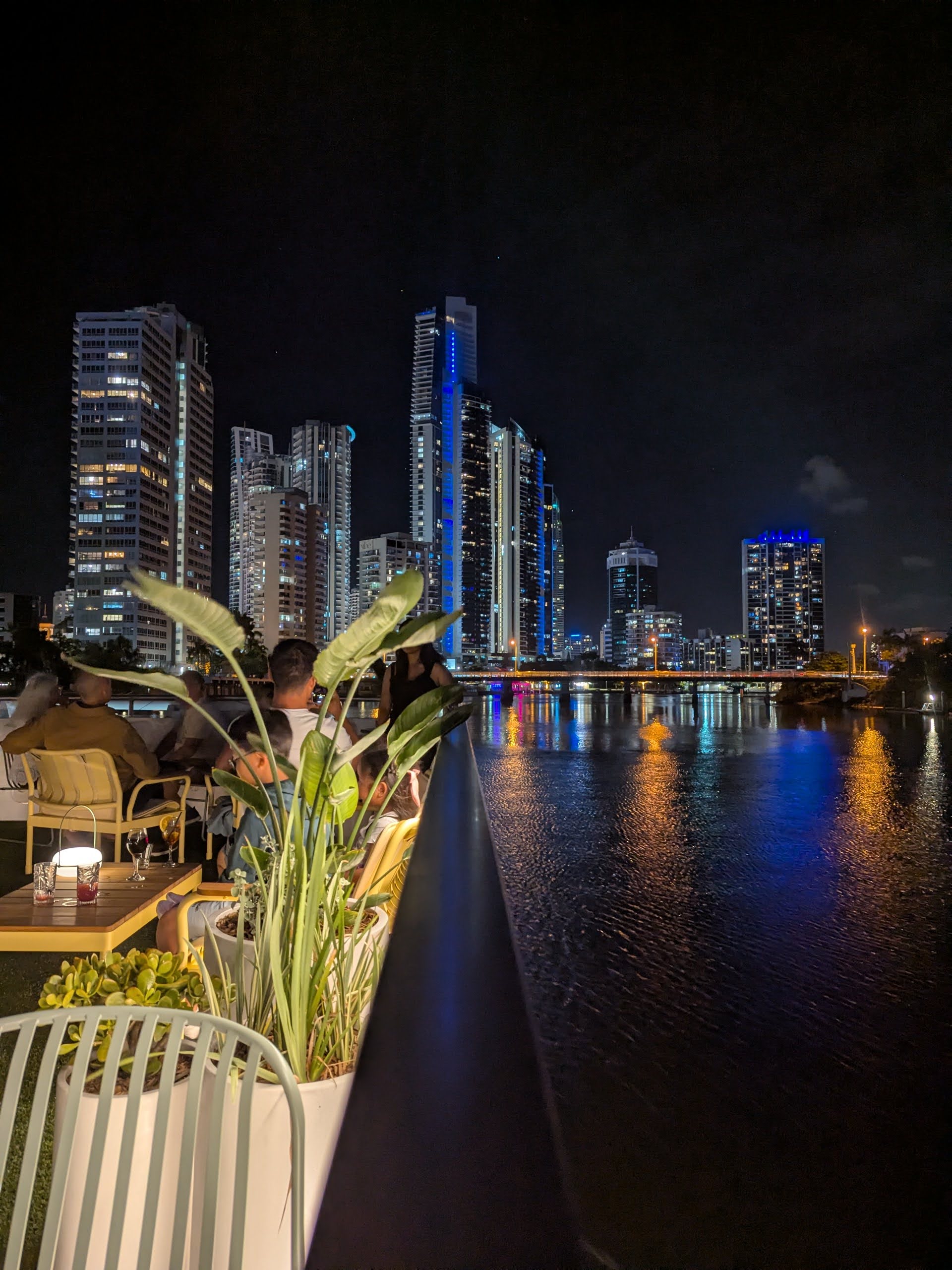 To round off the experience, we took the Gold Coast Buffet Dinner Cruise with Sea World Cruises—and it was pure magic. Aboard the Spirit of Elston, we cruised the calm waterways while enjoying live music, incredible food made from local produce, and drinks under the stars. The rooftop deck offered a perfect vantage point to take in the glittering skyline of Surfers Paradise, Marina Mirage, and beyond. This is a must-do for couples and anyone celebrating something special.